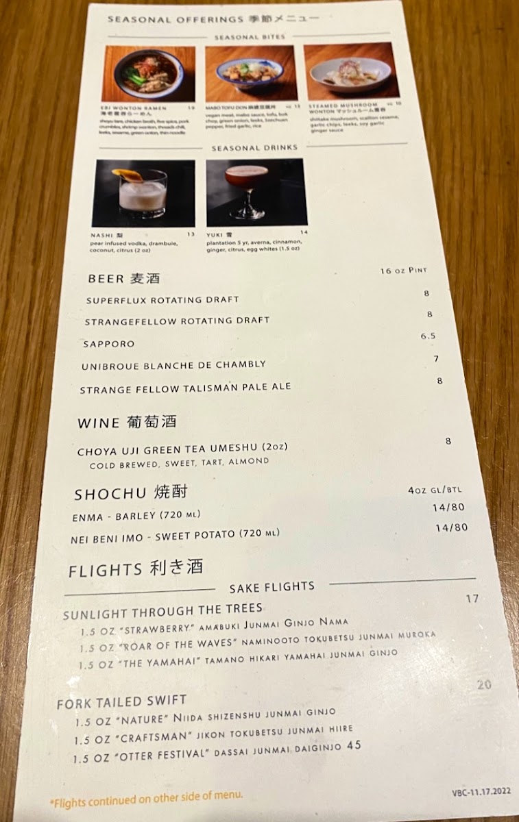 I ordered their dine out menu, which was 45 for dinner for a three course meal. The softshell crab bun and the vanilla ice cream with Yuzu and hazelnuts were the highlights for me on top of the excellent service. The limeade was also refreshing and the atmosphere of this restaurant is fantastic!